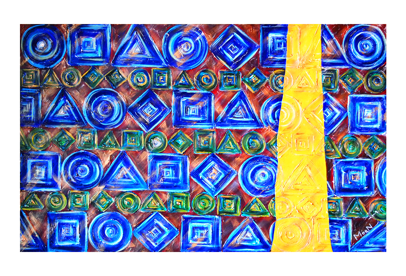 Oftentimes, the written language lacks adequate vocabulary to fully convey the artwork's complex subject matter or the artist's reflections. In The Road series, Ms. Kim attempts to represent aspects of humanity and human beings by utilizing basic shapes in snapshot depictions of humanity walking the road of life in the Past and the Present. She asks you to consider several questions during each time point...